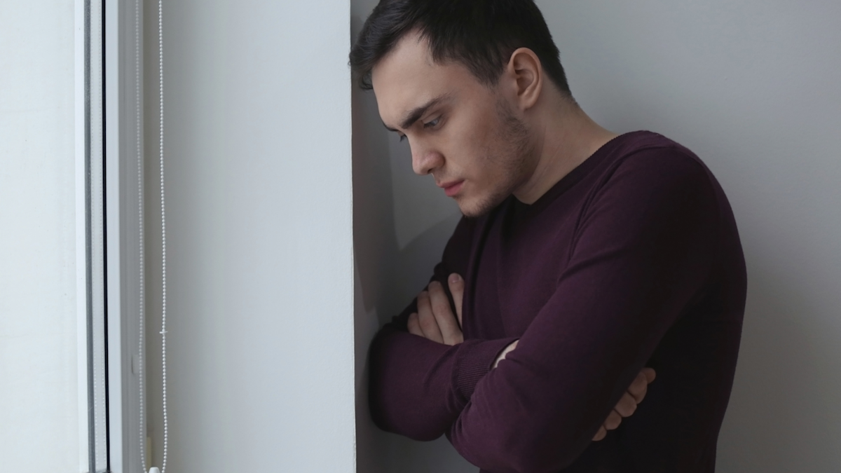 Image: A man stands with his arm crossed in a white room, the photo captures his side profile, he looks unhappy.
