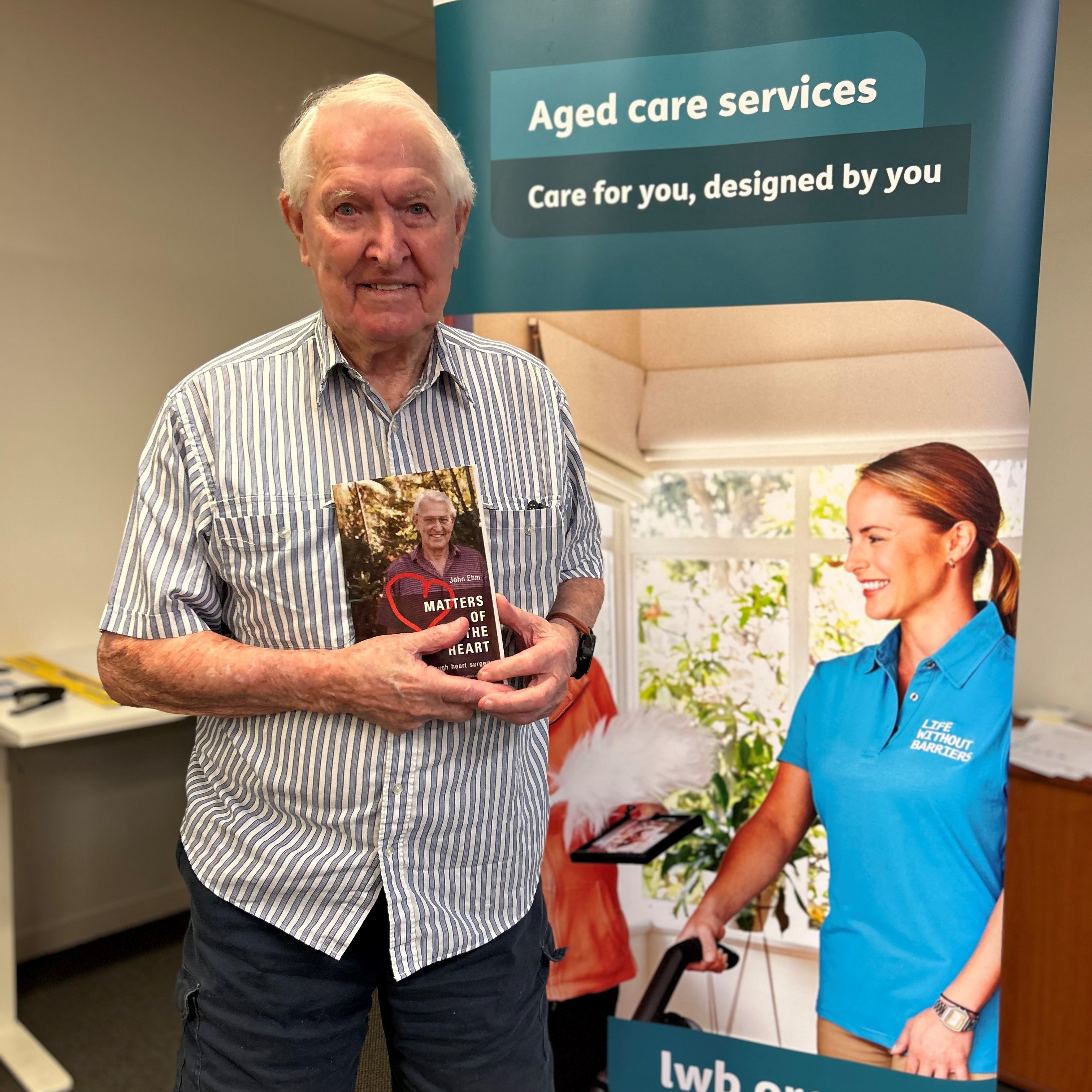 John Ehm is an author and generously donated copies of his memoir, Matters of the Heart, to the Life Without Barriers office in Cairns.
