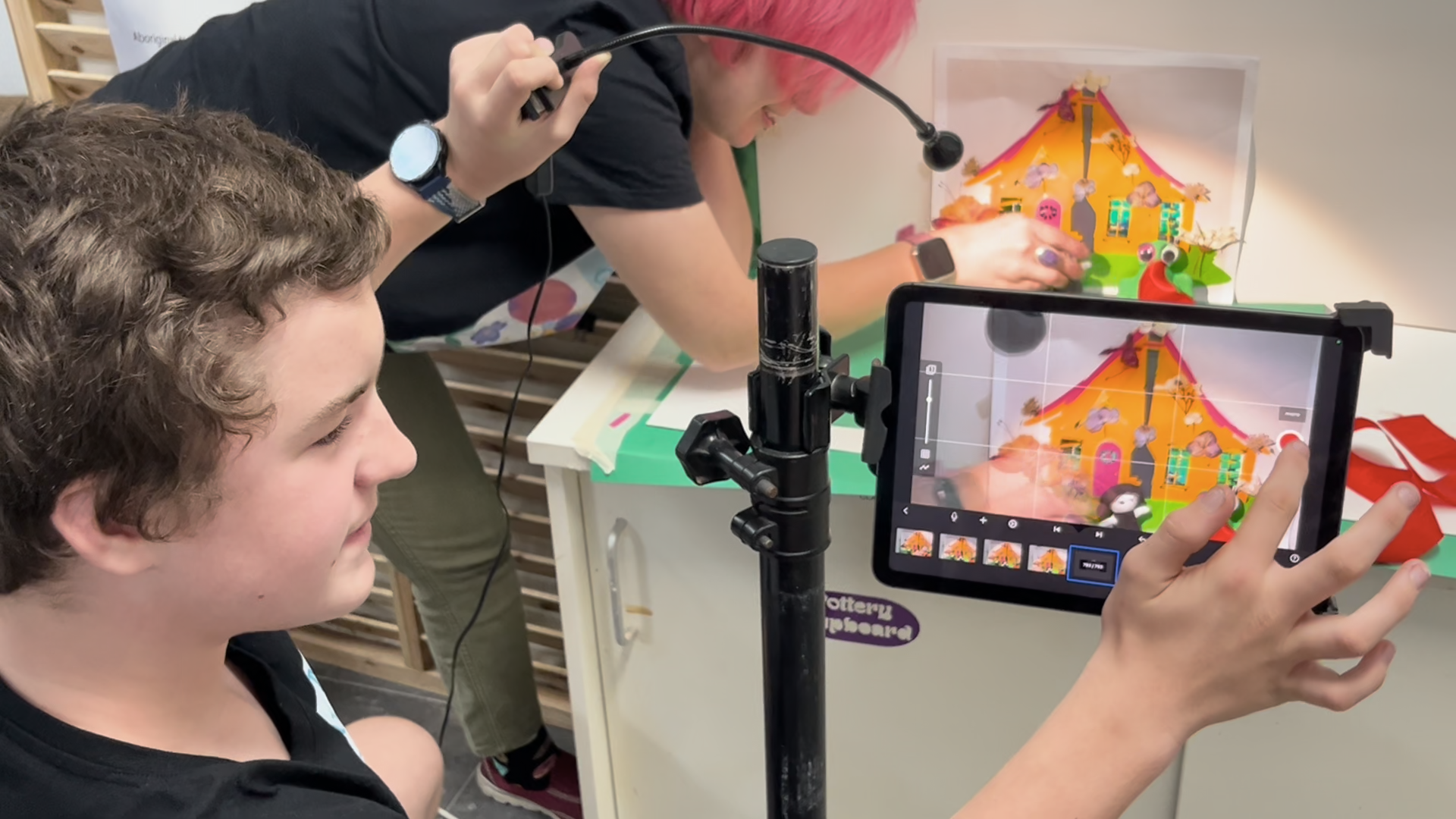 Phi's warm and fun manner immediately put Jasper at ease, and they set about combining their creative talents. In the first session, to help Jasper get into his creative groove, they used a 'roll a story' template and a fluffy dice to come up with a storyboard for their animation.