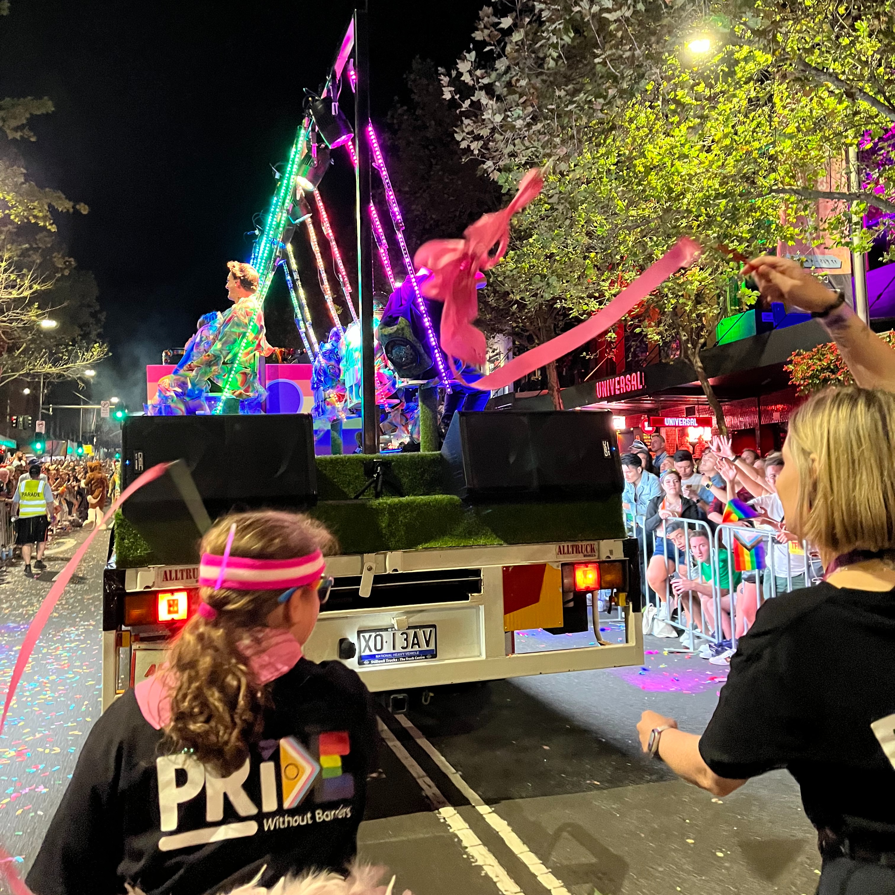 "It was a great night, spending time chatting with the people we support, their carers and staff, waving our rainbow and trans ribbons and seeing the crowd's support for the important work we do. Happy Mardi Gras and World Pride everyone,” said Gillian.