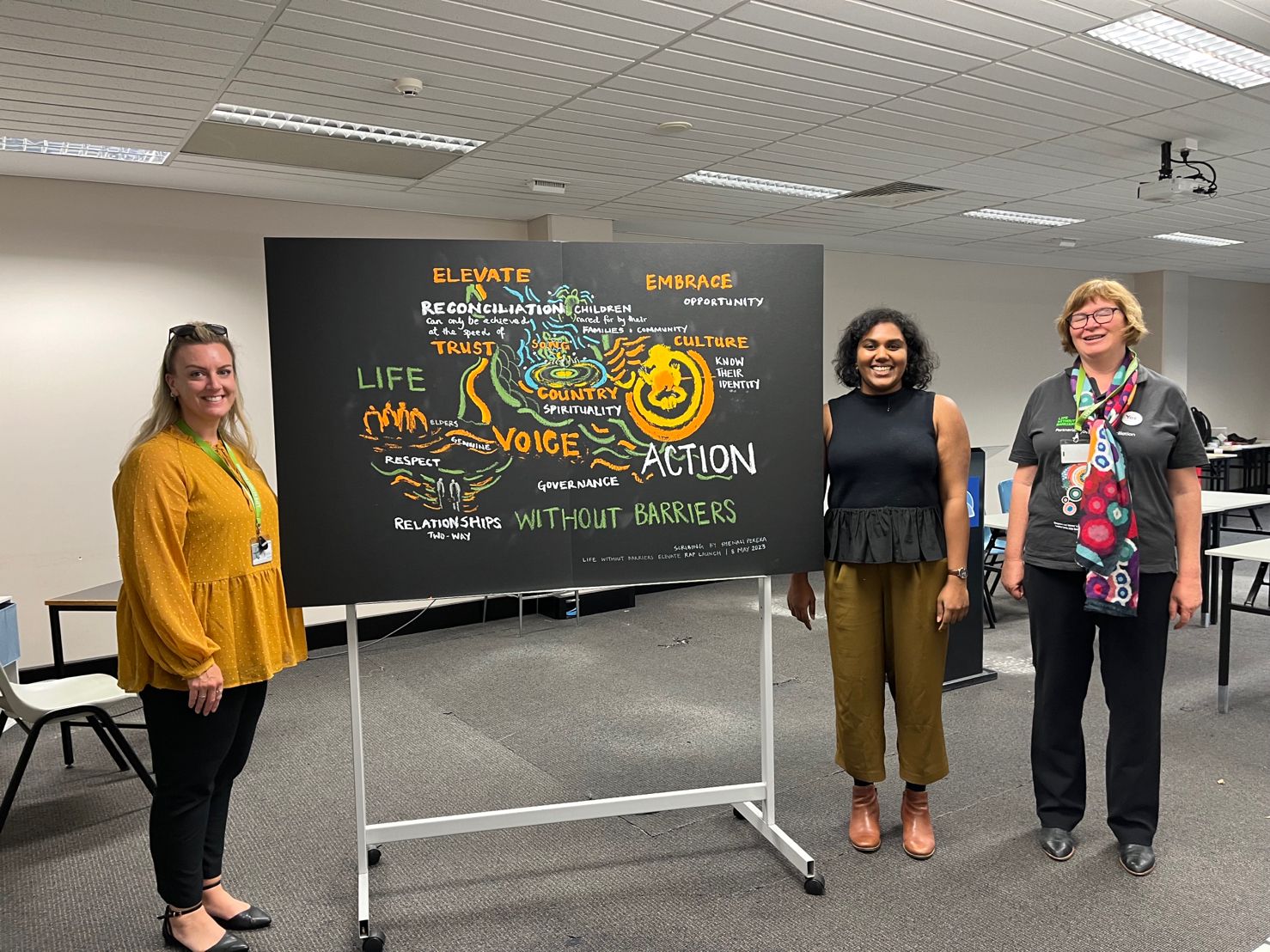 Staff welcomed partners and Elders Larissa Perry, Aunty Milly, and Aunty Charmaine for an afternoon of reflection and challenge.