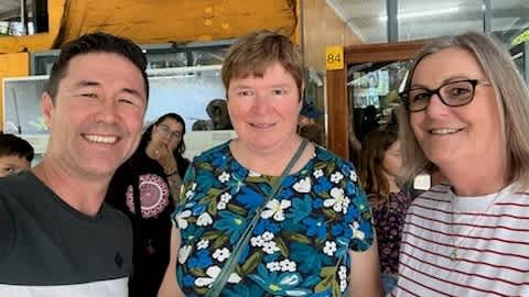Image: Marloes Blonk, Central Hub Home Provider, Louise Pekan, Mockingbird Family Liaison Officer, and Jess Kneale, Kwilena Hub Home Provider, smile at the camera.