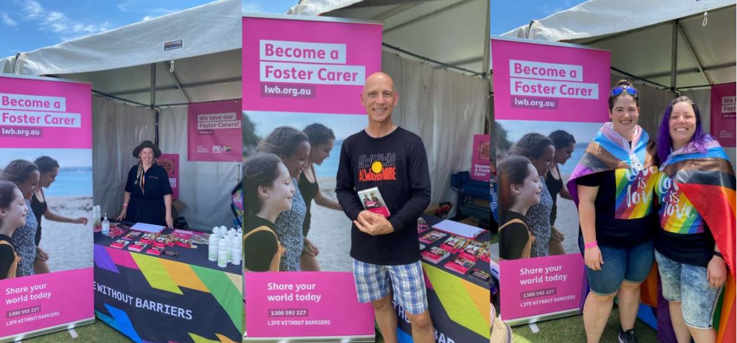 Image: Life Without Barriers foster care booth. Foster carer Chris, in the centre image, was happy to help out.