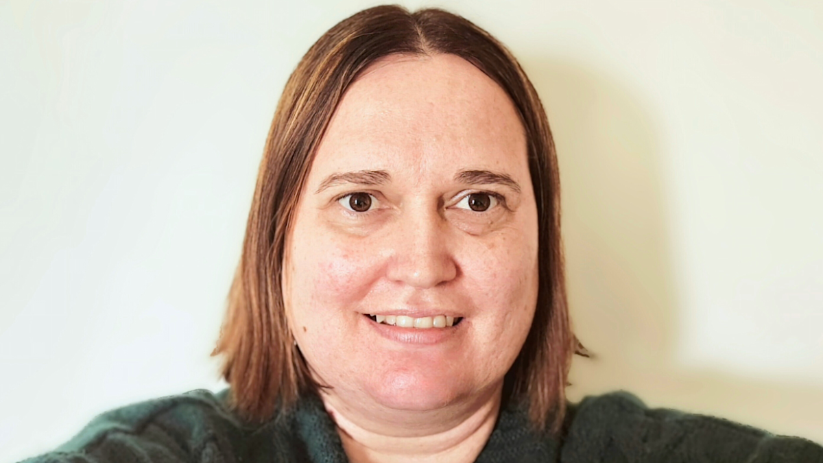Image: A close-up of Dinalise Swart, Behaviour Support Practitioner, who has short brown hair and wears a grey jumper.