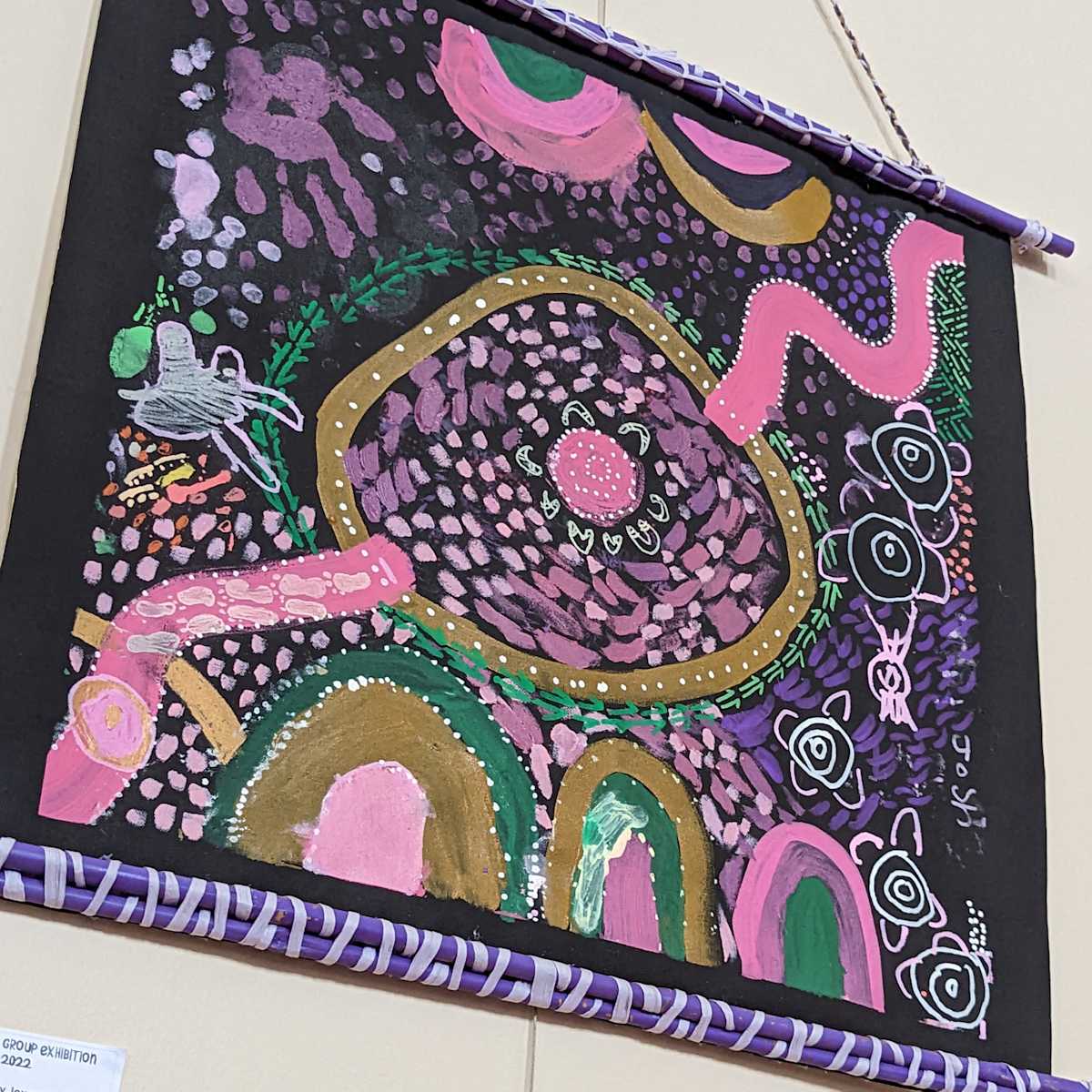 Image: Artwork created by John, inspired by Barkindji artist Caitlin Davies Plummer.