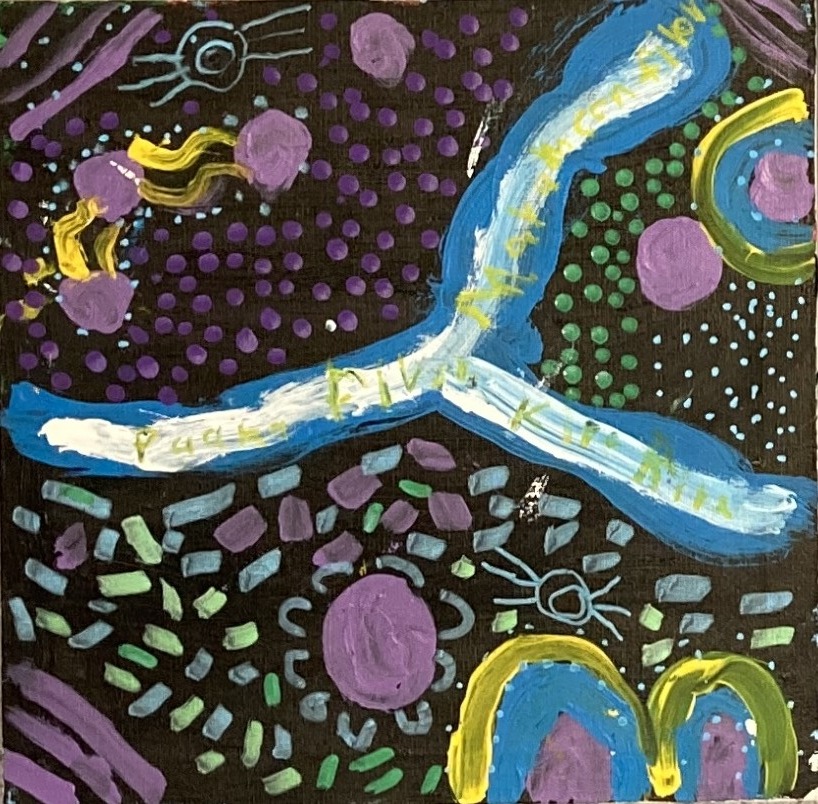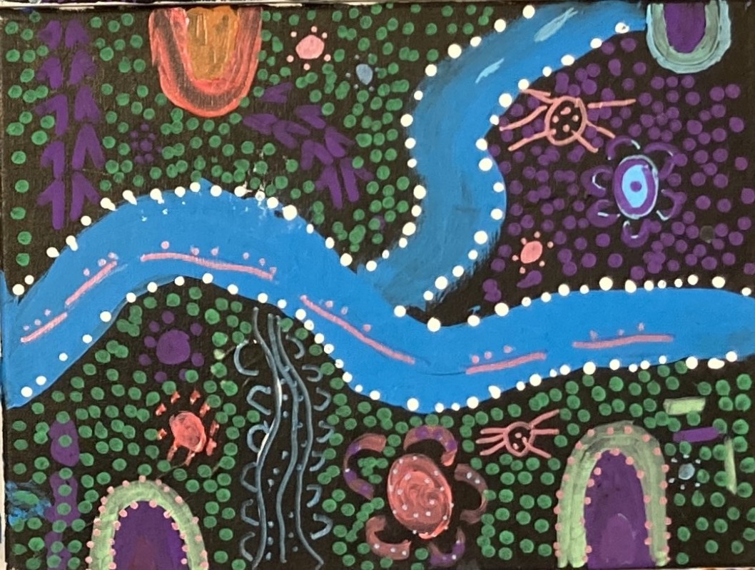 Image: Artwork created by John, inspired by Barkindji artist Caitlin Davies Plummer.