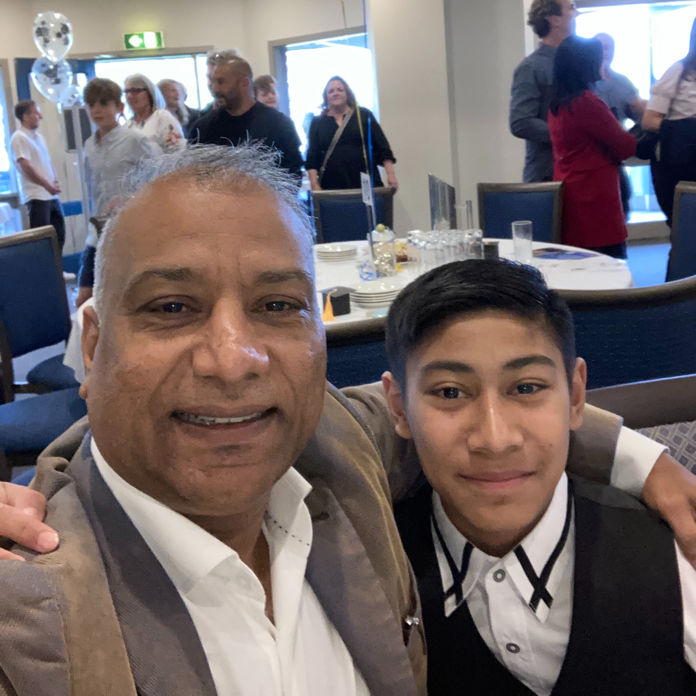 Image: Shahid and his son at his son's grade 6 graduation event.