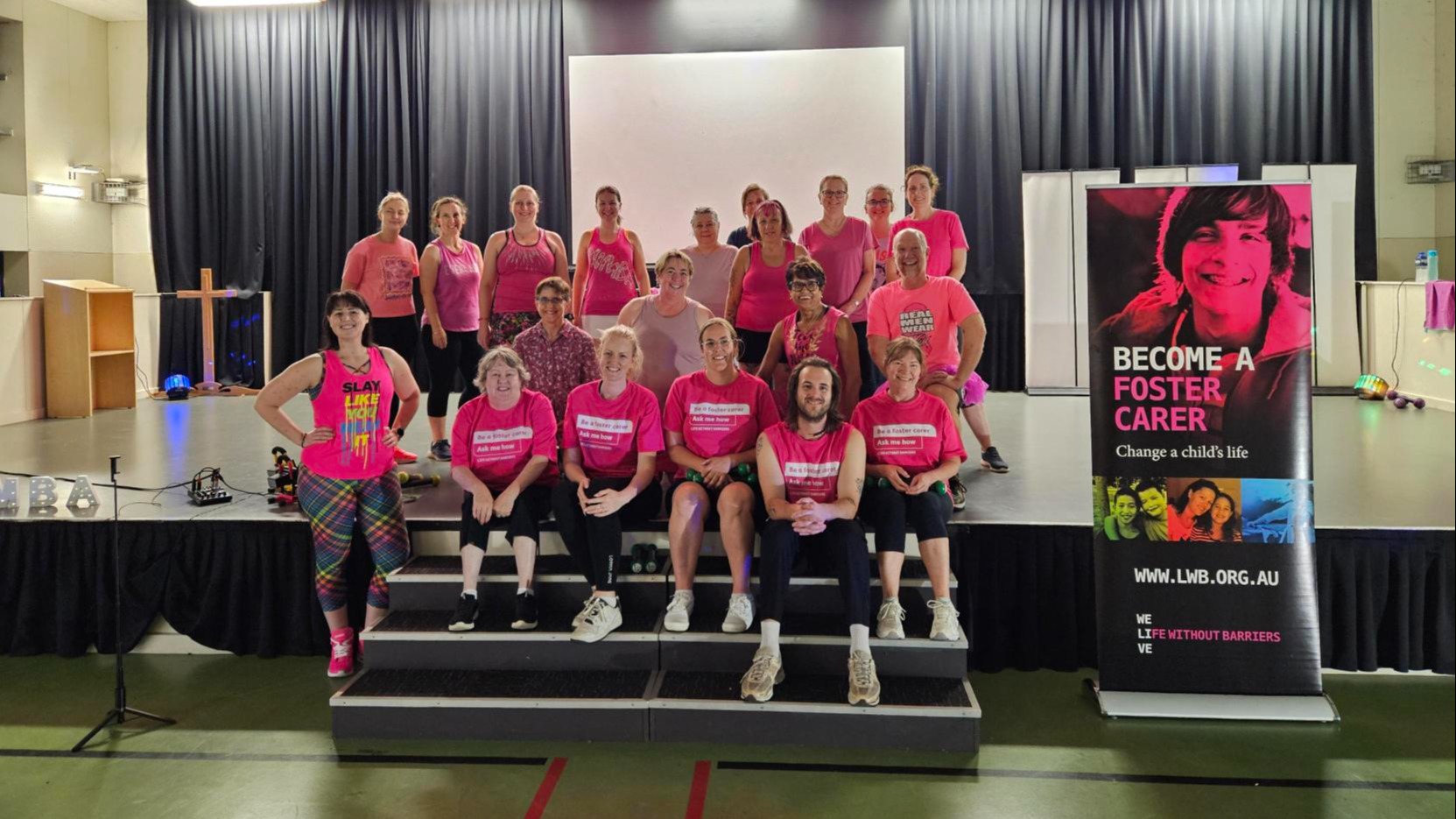 Image: Life Without Barriers staff taking part in a zumba class to promote Sharing is Caring.