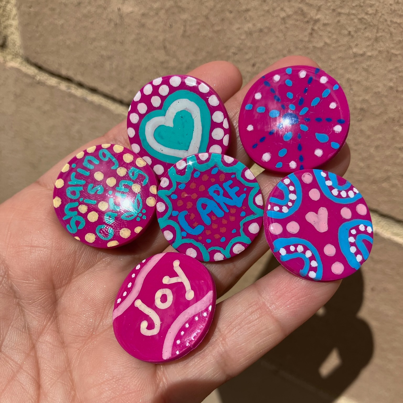 Image: Rocks painted in pink as part of a Sharing is Caring activity.