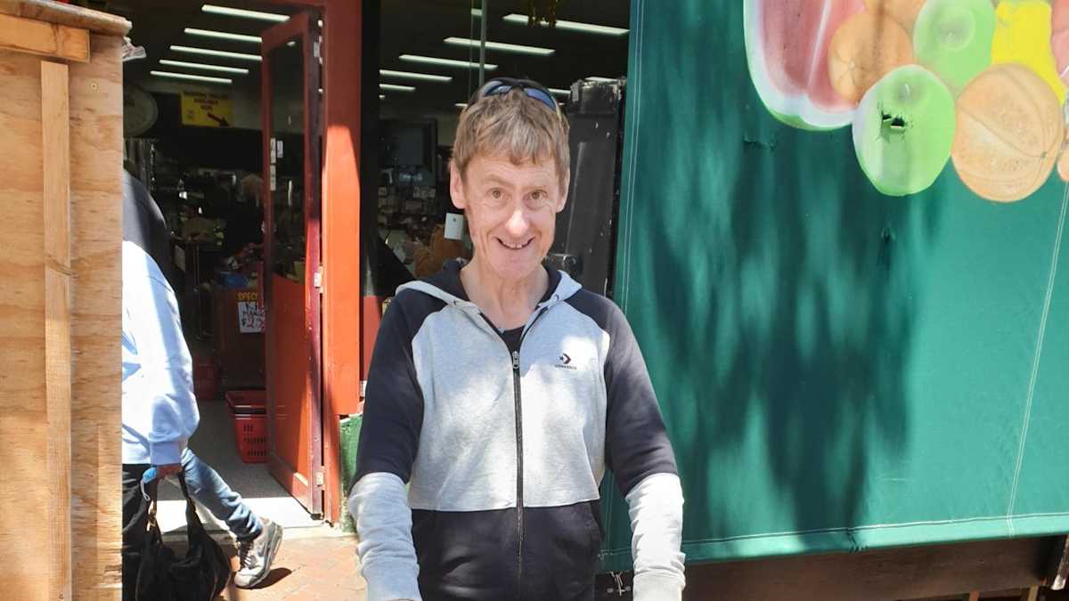 Image: Glenn standing out the front of a shop, smiling at the camera.
