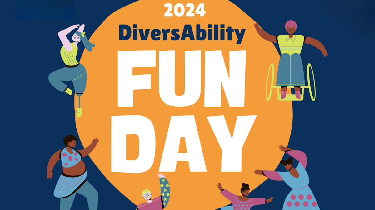 Image: Graphic tile with a dark blue background, icons of people with disability and text: 2024 DiversAbility Fun Day.