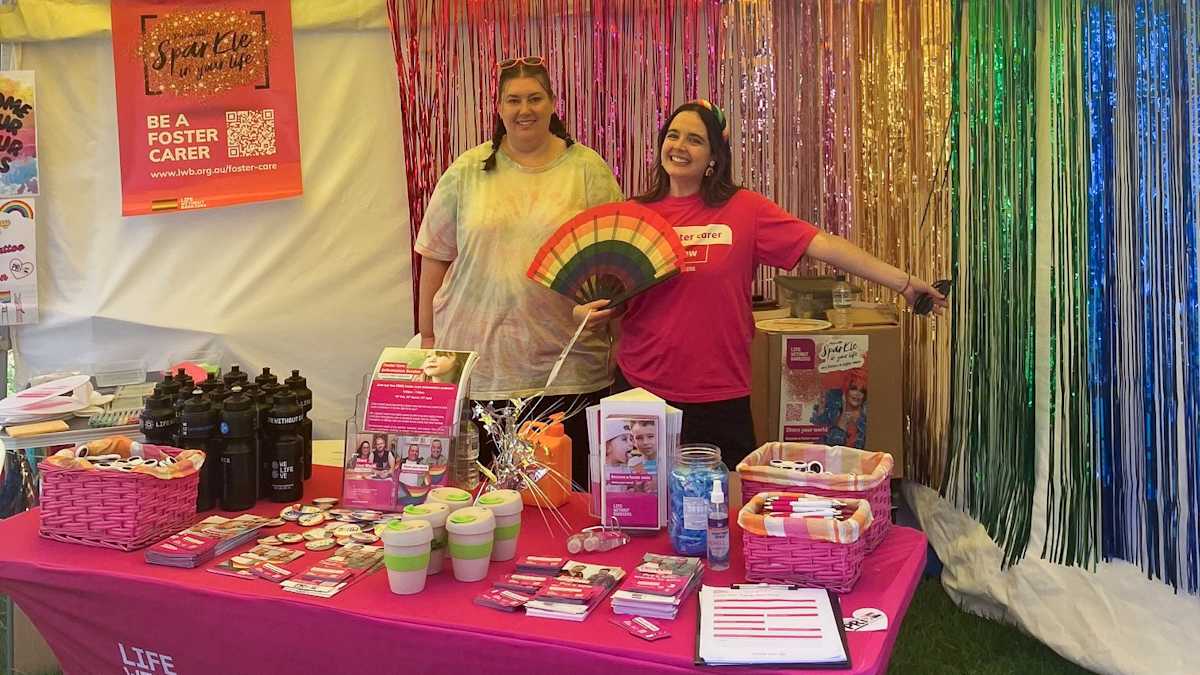Image: Two Life Without Barriers staff members hosting a stall at Midsumma 2025.