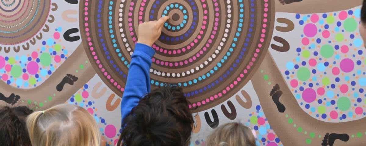 Image: Aboriginal art wall at NAIDOC Week celebrations at Rundle Mall, Adelaide.