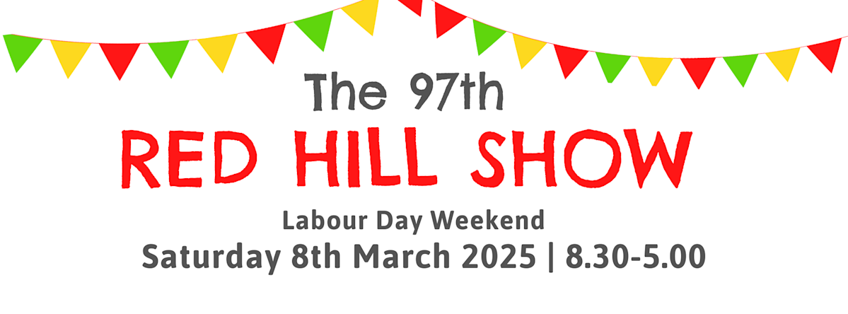 Image: Text: The 97th Red Hill Show. Labour Day Weekend. Saturday 8thy March 2025. 8:30 - 5:00.